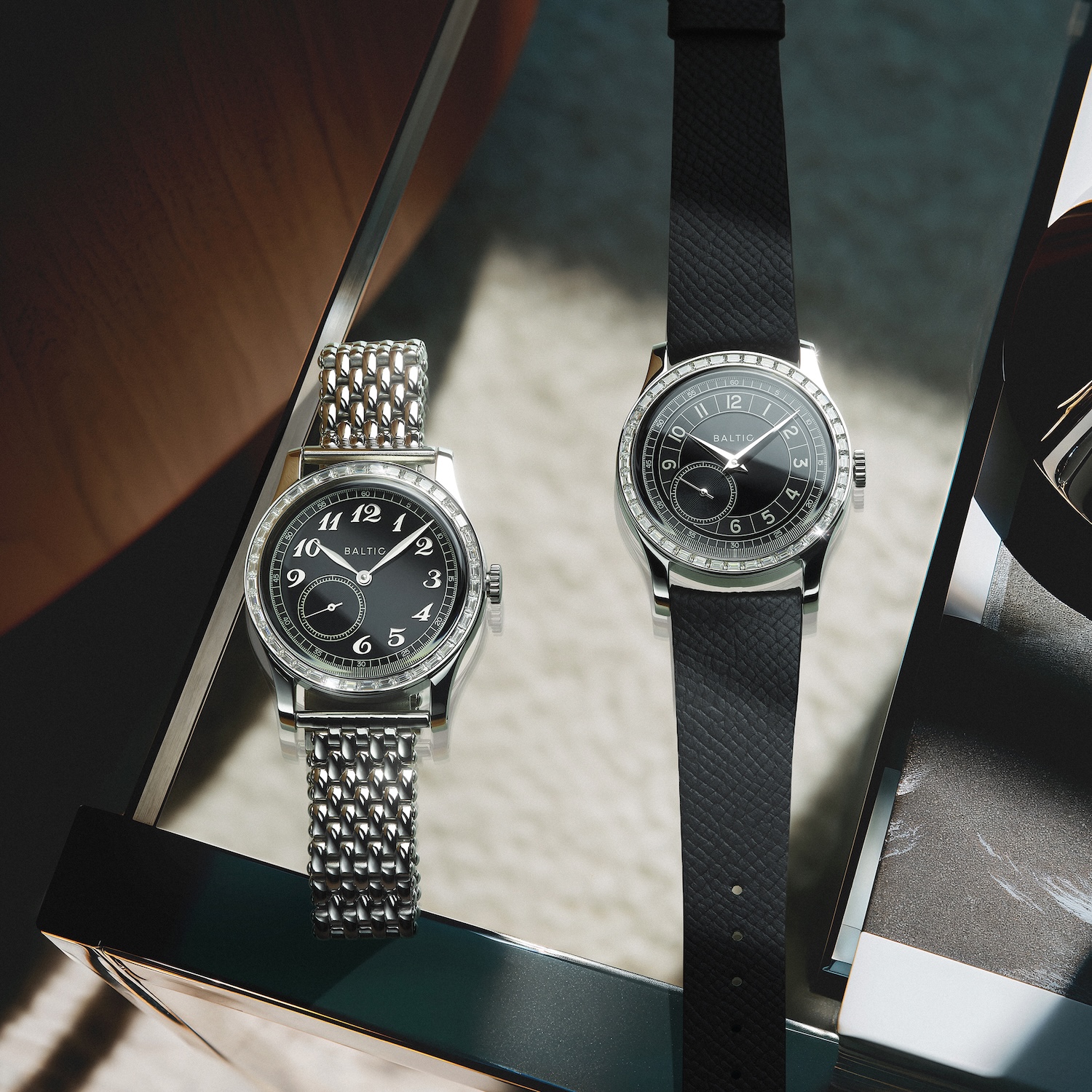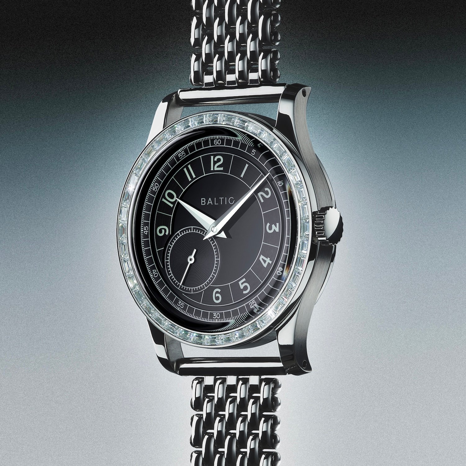Ces baguettes sont taillées dans de la moissanite synthétique, l’alternative la plus fidèle au diamant en termes de dureté et de brillance. Le résultat ? Une lunette éclatante, mais jamais vulgaire. Elle capte la lumière avec intensité tout en conservant une forme de retenue. Baltic le dit sans détour : la MR n’est pas une montre de luxe. Elle n’essaie pas d’en être une. Elle revendique plutôt une attitude, un goût affirmé, presque une prise de position dans un paysage horloger souvent trop sage.