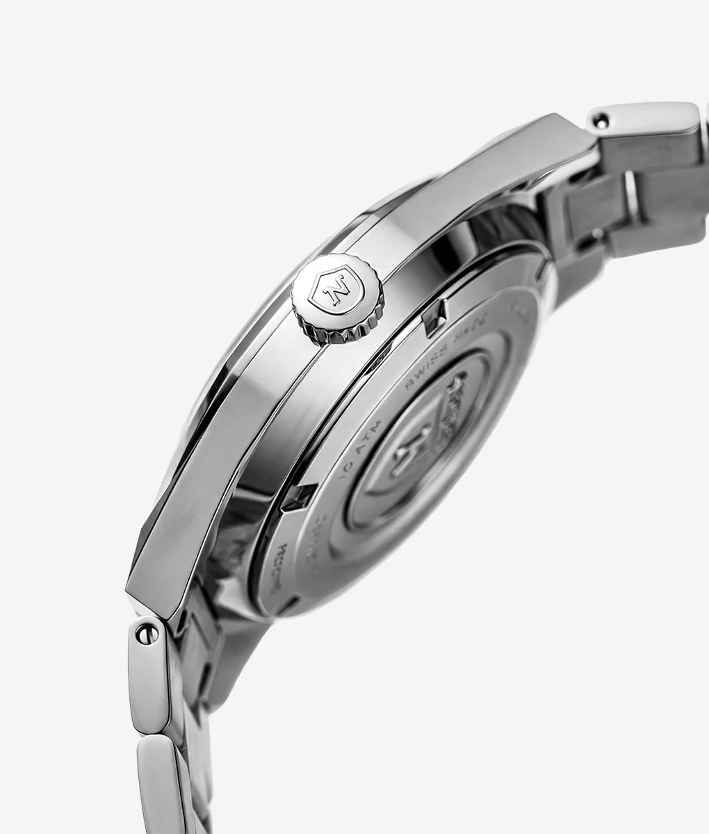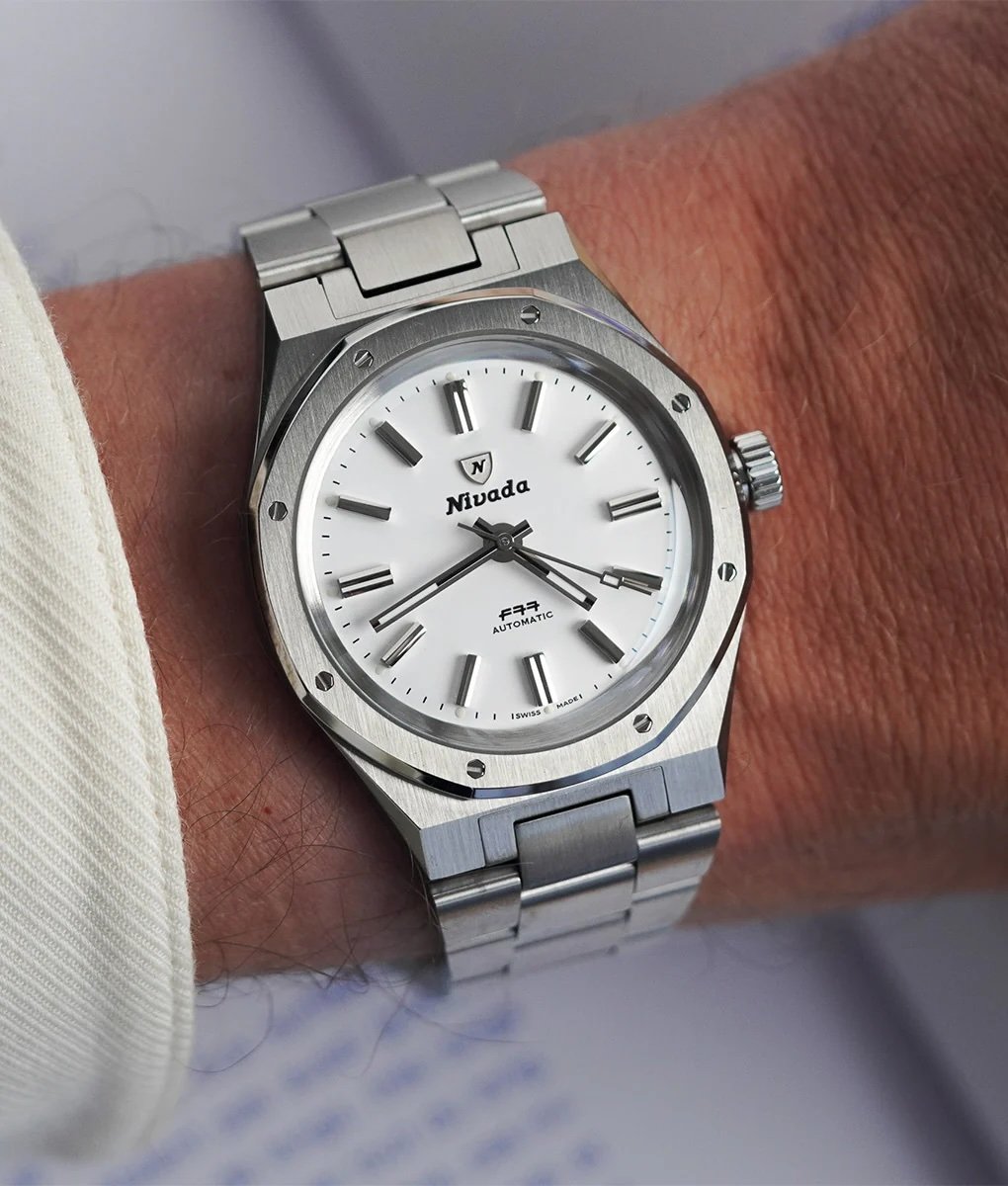 Animée par un mouvement automatique suisse (calibre Soprod P024), estampillée “Swiss Made” et étanche à 10 ATM, cette F77 Polar White MK1 est une montre pensée pour être portée au quotidien. C’est une pièce polyvalente, capable de passer du bureau au week-end, de la ville à l’eau, avec la même évidence. Bref, une tocante qui répond en tout point à ce que nous cherchons aujourd’hui : des montres qui ne nous limitent pas, dans des activités sages comme plus téméraires. Car oui, nous sommes aussi actifs au bureau qu’en dehors.