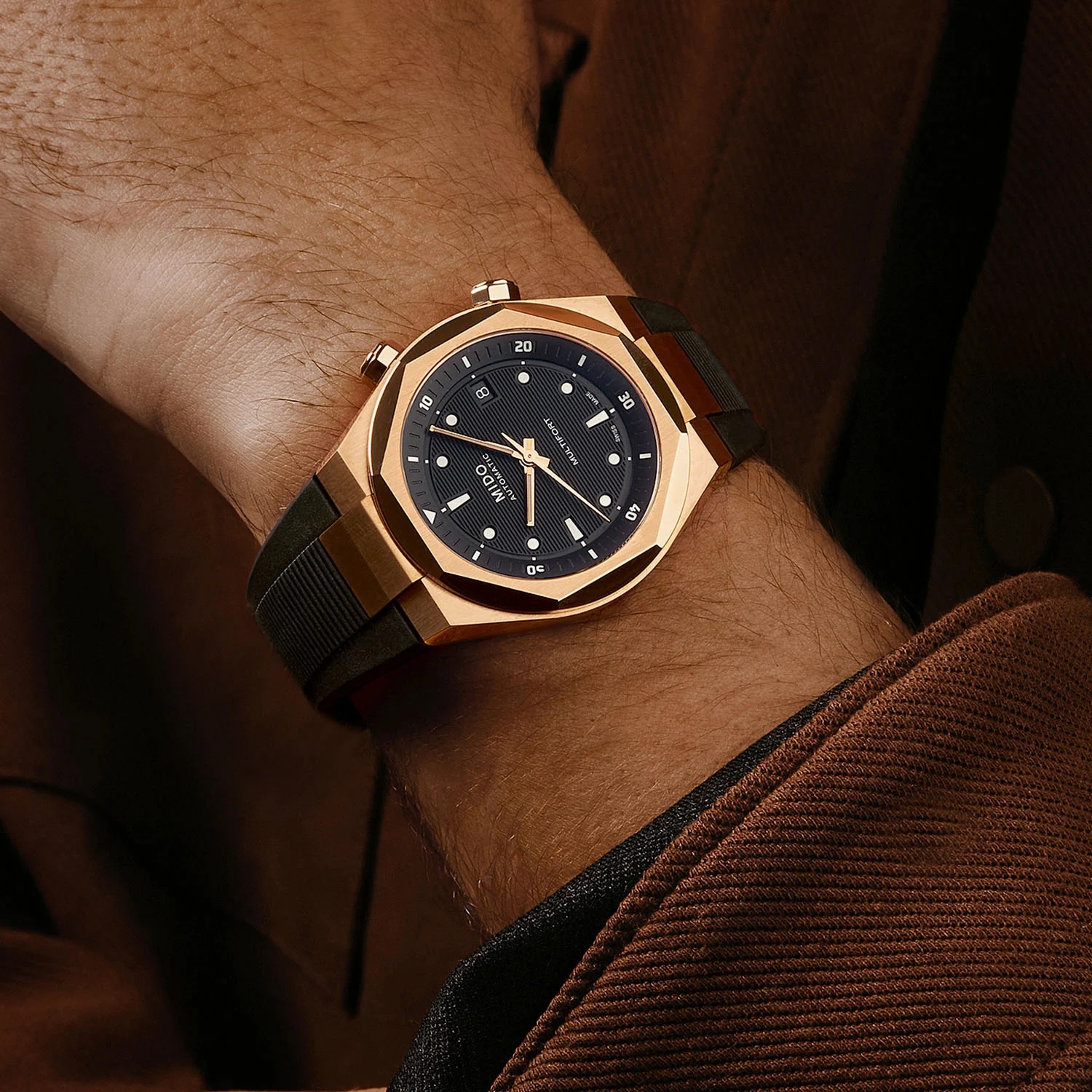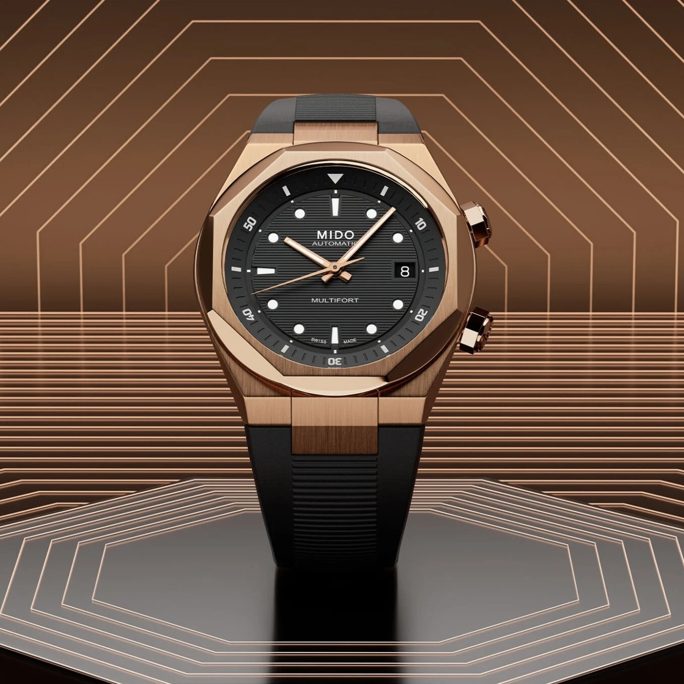 Lorsqu’elle a dévoilé la Multifort 8 Two Crowns plus tôt cette année, Mido a surpris par la justesse de sa proposition. Une montre sportive intégrée, fine, bien dessinée, mécaniquement solide et proposée à un prix cohérent, comme toujours. Avec cette nouvelle déclinaison PVD Rose Gold et cadran noir, la marque suisse ne change pas la recette, mais en modifie la tonalité. Plus graphique, plus contrastée, plus affirmée aussi. Une évolution esthétique qui donne une lecture différente — et plus sophistiquée — de cette Multifort nouvelle génération.