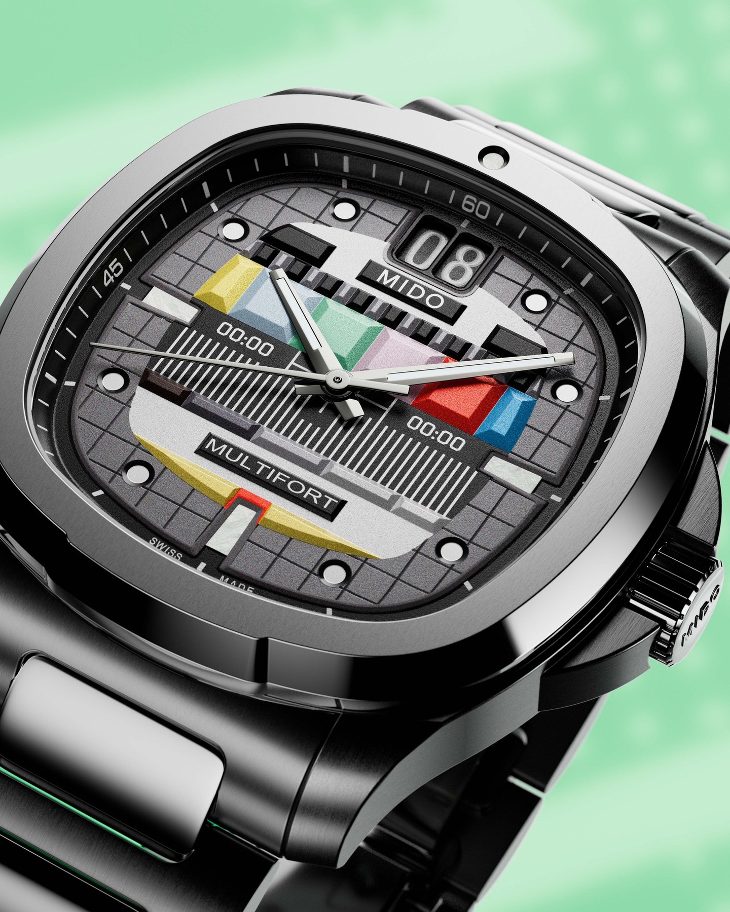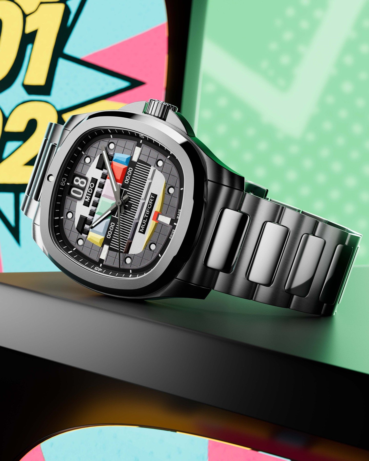 La nouvelle Mido Multifort TV Big Date S01E02 marque le retour d’une idée un peu folle : transformer la mire télévisuelle en cadran de montre. Un an après la première édition S01E01, Mido revient avec une exécution encore plus riche et toujours aussi cohérente, où le design rétro devient une signature assumée. C’est une montre qui ne cherche pas à plaire à tout le monde, mais qui capte instantanément l’attention et vous fait traverser les époques.