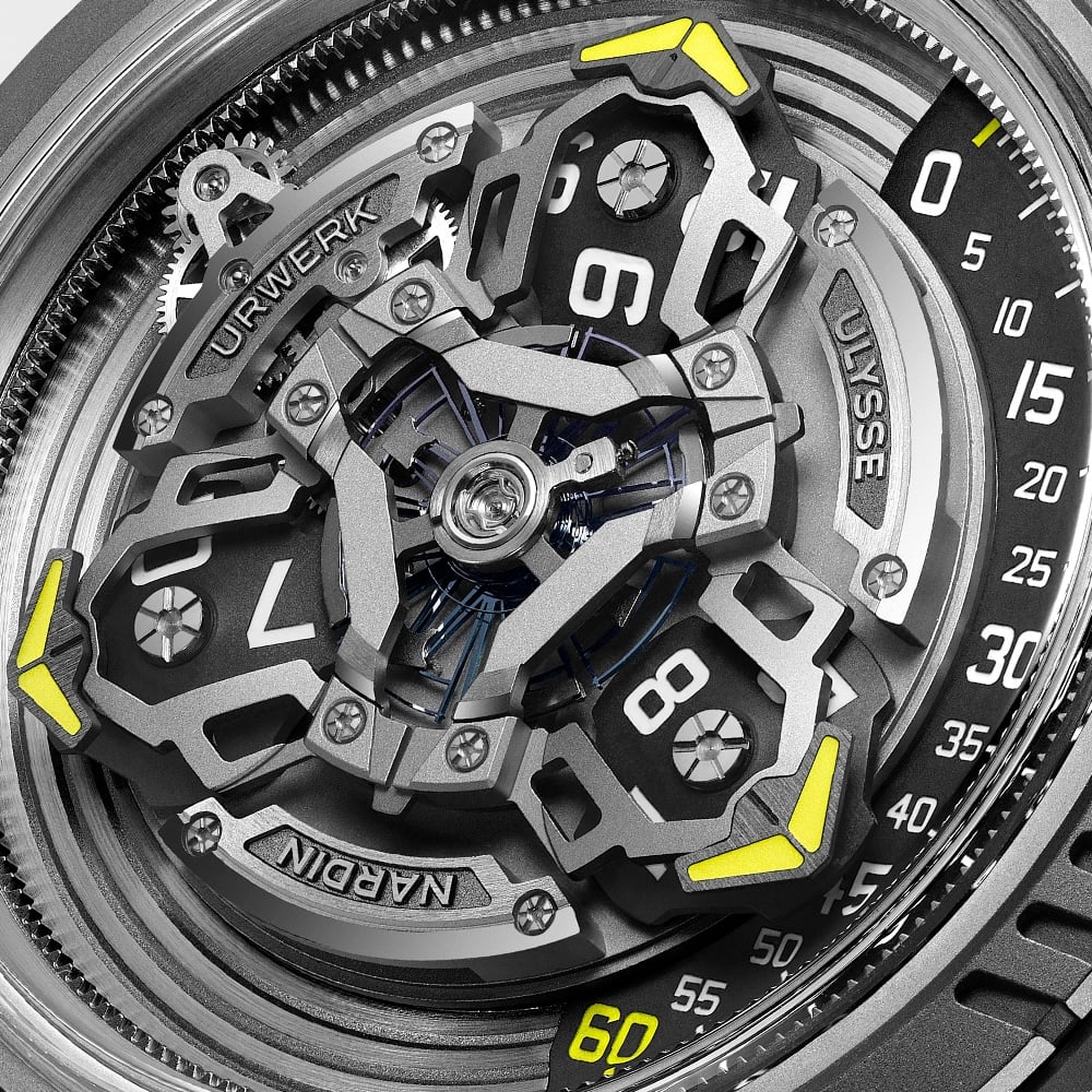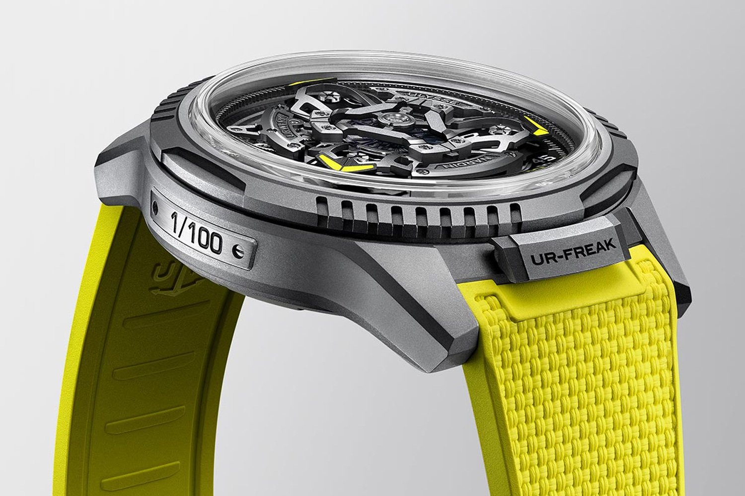Fruit d’une collaboration inédite entre Urwerk et Ulysse Nardin, la UR-FREAK fusionne deux philosophies horlogères radicales en une architecture mécanique totalement repensée. Dans son boîtier en titane sablé de 44 mm, le mouvement UN-241 intègre un carrousel volant rotatif avec un système d’heures vagabondes par satellites, le tout visible sans cadran traditionnel, animé par un oscillateur en silicium et doté d’une réserve de marche d’environ 90 heures. Sans couronne et produite en édition limitée à 100 pièces, cette création n’est pas un simple “crossover” esthétique mais une synthèse technique marquante qui réinvente la lecture du temps dans une dimension unique en son genre. Prix : 116 630 €. Disponible ici >>>