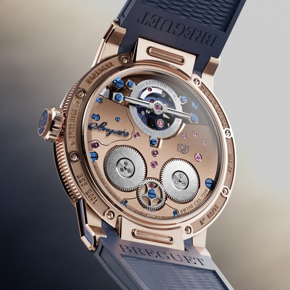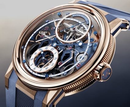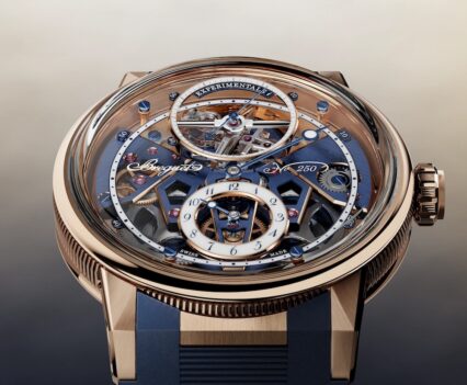 Terminons avec Breguet et son Expérimentale 1 (référence E001BH/S9/5ZV) qui inaugure une toute nouvelle ligne dédiée à l’innovation, en célébration du 250ème anniversaire de la maison, où recherche et développement deviennent un manifeste dans une montre-laboratoire hors norme. Logée dans un boîtier en or Breguet 18 K de 43,5 mm, elle expose un mouvement mécanique à remontage manuel, le Calibre 7250, animé par le premier tourbillon cadencé à 10 Hz avec échappement magnétique à force constante et affichage régulateur intégralement visible sur un cadran en verre saphir. Limitée à 75 pièces et dotée d’une précision exceptionnelle (+/- 1 seconde par jour), cette création symbolise peut-être le renouveau d’un héritage séculaire de l’une des plus anciennes manufactures au monde. Prix : 320 000 CHF. Disponible ici >>>