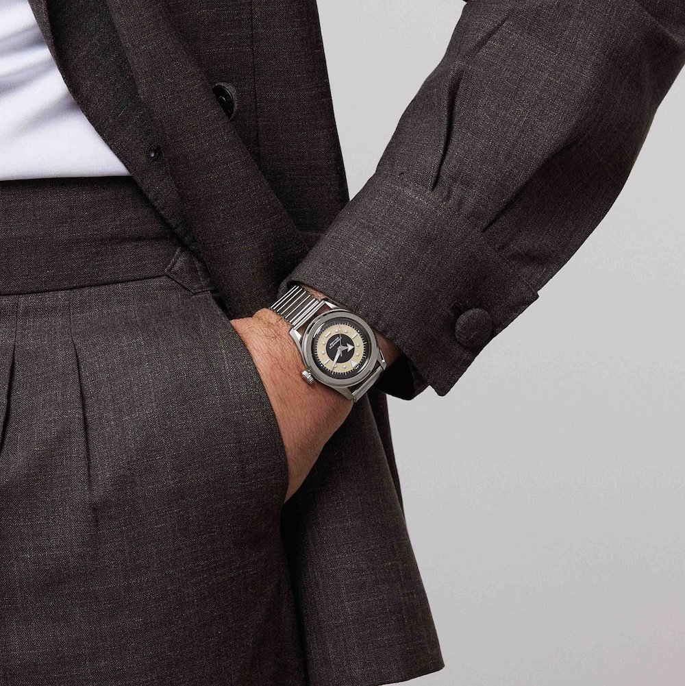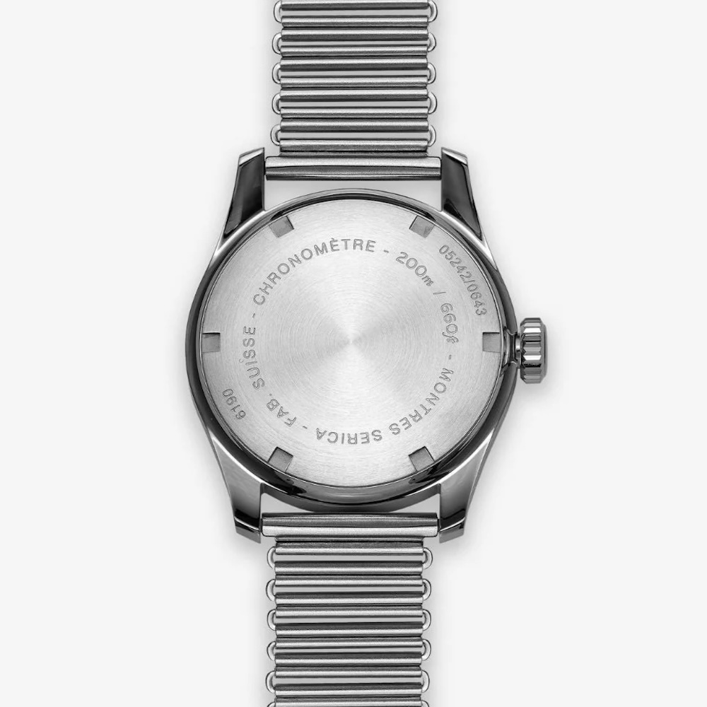 Chez Serica, la 6190 TXD réinterprète avec finesse la Field Watch qui a fait la réputation de la maison parisienne, en lui offrant un cadran tuxedo émaillé bi-ton où les zones contrastées noir et beige dialoguent avec des index appliqués à la main remplis de Super-LumiNova C3 pour lisibilité et élégance du soir jusqu’au matin. Logée dans un boîtier acier de 37,7 mm étanche à 20 bars et animée par un calibre automatique suisse Soprod M100 certifié chronomètre par le COSC avec environ 42 heures de réserve, cette Serica allie une certaine sophistication graphique, la robustesse d’une tool-watch et une surtout vraie personnalité. C’est une pièce qui incarne la capacité de la marque à marier tradition et modernité tout en restant raffinée, toujours avec cette patte reconnaissable au premier coup d’oeil. Prix : 1 190 €. Disponible ici >>>
