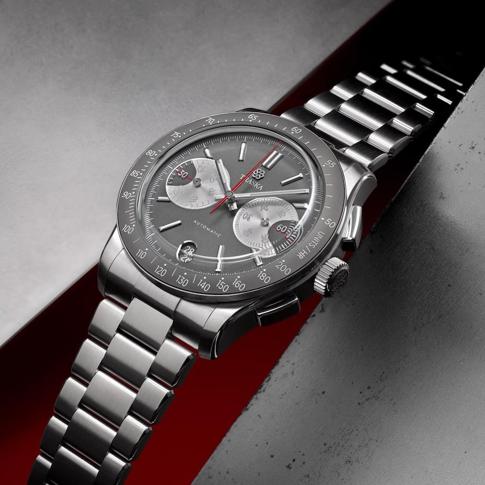 Derrière cette nouveauté, la micro-marque américaine Traska franchit un cap symbolique en s’attaquant pour la première fois au chronographe. Après son superbe GMT Venturer dont nous vous avions parlé, le Chronograph Ref. 10251 se distingue par ses compteurs à disques transparents rotatifs, une approche lisible et résolument moderne, associés à une lunette tachymétrique en tungstène puis à un boîtier en acier durci maison de 39 mm de largeur étanche à 75 mètres ! Animée par le calibre automatique Seiko NE86 avec roue à colonnes et embrayage vertical, cette pièce proposée à 1 419 € (hors taxe) illustre une évolution assumée, plus ambitieuse, mais toujours pensée pour un usage réel. Pour nous, c’est un immense coup de coeur. Pour vous, elle sera disponible dès le 1er mars.