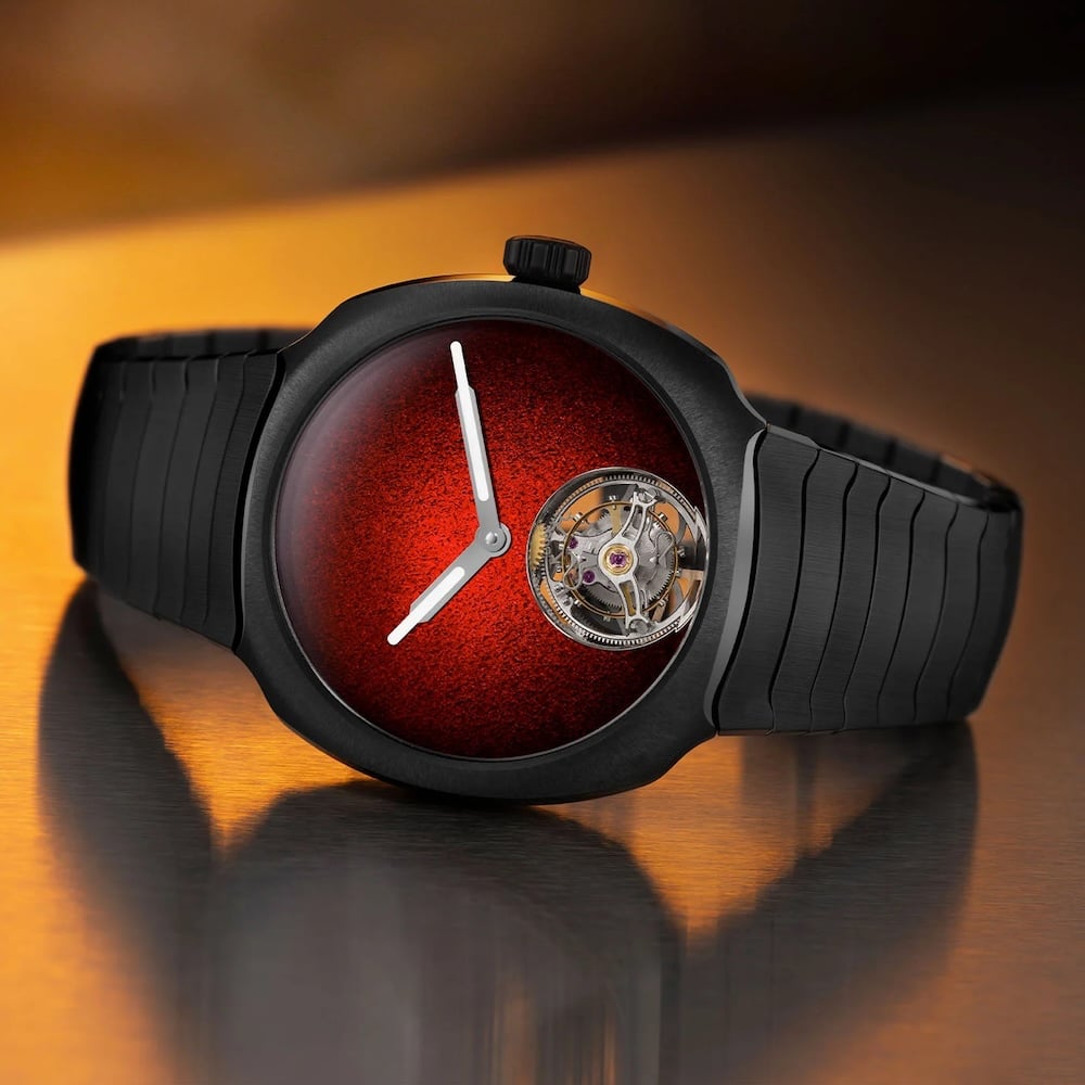 L’un de nos maisons horlogères préférées, H. Moser & Cie, franchit un cap en dévoilant sa toute première montre entièrement réalisée en céramique. La Streamliner Tourbillon Concept Ceramic associe un boîtier et un bracelet intégrés en céramique gris anthracite à un spectaculaire cadran fumé en émail Grand Feu flamboyant, presque incandescent, volontairement dépourvu de tout marquage. Le tourbillon volant ajouré à 6 heures et le calibre manufacture HMC 805 à double spiral incarnent parfaitement la philosophie “Concept” de la maison, pour une pièce forte et radicale proposée à 89 000 CHF. Ce n’est pas pour tout le monde, mais c’est toujours aussi spectaculaire.