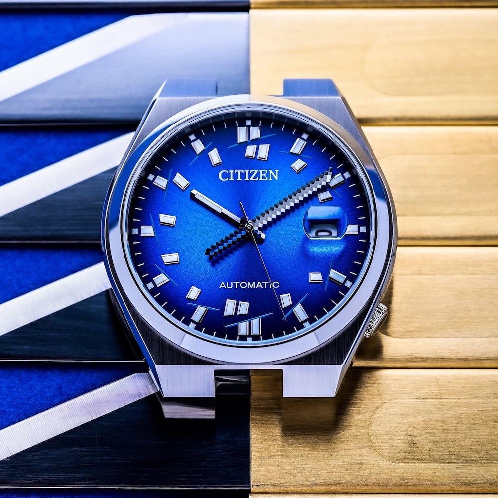 Avec cette collaboration, Citizen joue probablement sa carte la plus conceptuelle. En confiant sa célèbre Tsuyosa à Romaric André (voir notre interview ici), alias seconde/seconde/, la maison japonaise voit l’idée de l’aiguille glaive (« sword hand » en anglais) prise au pied de la lettre : la minute, pixelisée selon la patte de l’artiste, tranche littéralement les index du cadran bleu soleillé dégradé. Le boîtier acier de 40 mm, le calibre automatique 8210 et la finition restent fidèles à l’esprit Tsuyosa, pour une édition limitée à 3 600 pièces dans le monde proposée à 449 €. Une pièce ludique et intelligente, qui prouve qu’une montre accessible peut aussi porter un vrai propos créatif. Si vous aimez, il faudra dégainer plus vitre que votre ombre car elles partent à la vitesse de la lumière !