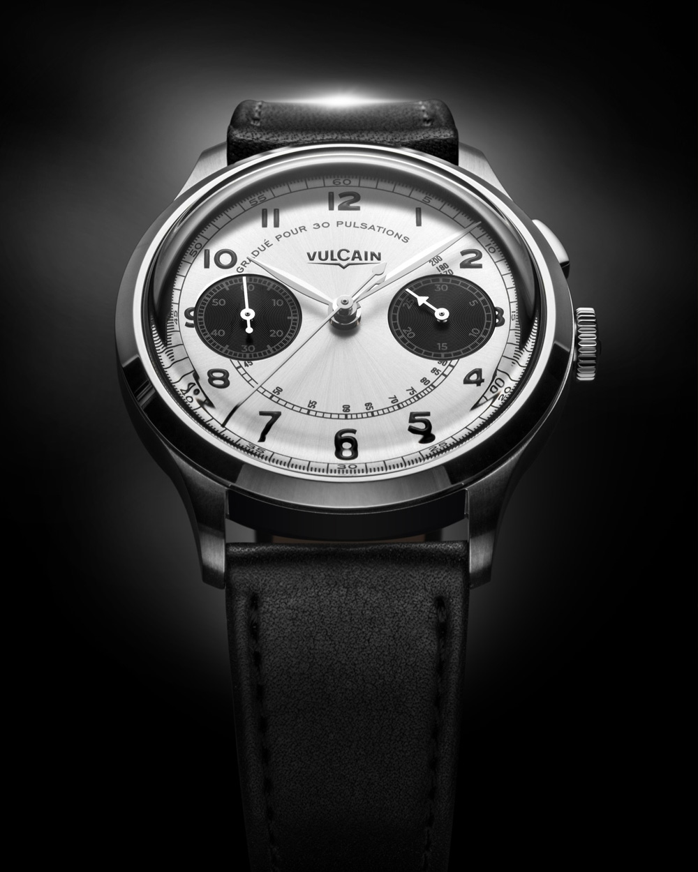 La Vulcain Monopusher Heritage Panda remet au goût du jour le chronographe monopoussoir classique avec une élégance discrète et un vrai parfum d’années 1950. Son boîtier en acier de 38,9 mm, rehaussé d’un verre saphir bombé, encadre un cadran blanc soleillé aux compteurs noirs, ponctué d’une échelle pulsométrique qui accentue son look d’instrument vintage. À l’intérieur, on retrouve le calibre à remontage manuel Sellita SW510 M MP b, offrant une confortable réserve de marche d’environ 58 heures et une utilisation intuitive grâce au mono-poussoir unique pour lancer, arrêter et remettre à zéro le chronographe.