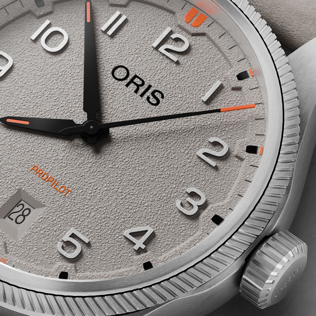 Un passionné averti posera immédiatement la question : pourquoi ne pas avoir intégré le Calibre 400 ? La réponse va au-delà du coût. Le mouvement maison est réservé aux montres qui incarnent l’avant-garde d’Oris, celles qui portent sa dimension technique et son ambition industrielle. La ProPilot Date, elle, doit rester accessible, réparable, robuste, avec un entretien simple.