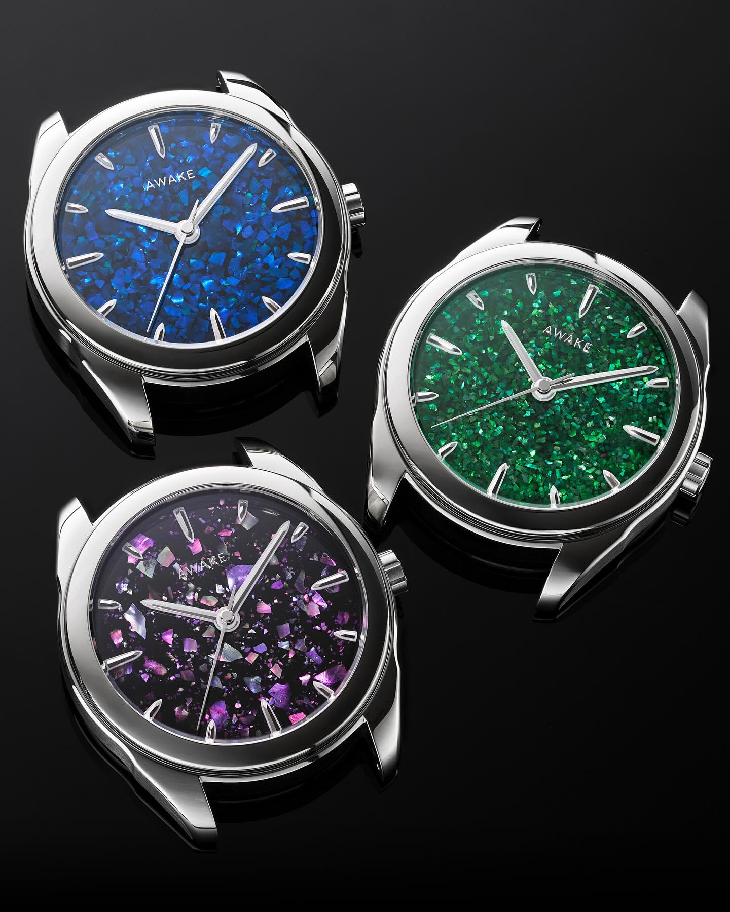 Les nouvelles créations de la marque française, nommées Son Mài Fragments, exaltent un art horloger inattendu avec un cadran en laque vietnamienne traditionnellement réalisé à la main, chaque pièce étant unique. Le boîtier de 39 mm en acier poli avec une carrure brossée accueille un mouvement automatique signé La Joux-Perret (calibre G101) avec 68 heures de réserve de marche, tandis que la finition “fragments” exploite des particules nacrées dispersées derrière la laque, créant un effet visuel presque magnétique. Ces montres Awake conjuguent une esthétique artisanale et urbaine de manière fluide avec une signature lumineuse presque futuriste. Une belle invitation à porter l’art au poignet sans aller dans des tarifs inaccessibles pour le commun des mortels. On adore ! Prix : 2 700 €. Disponible ici >>>