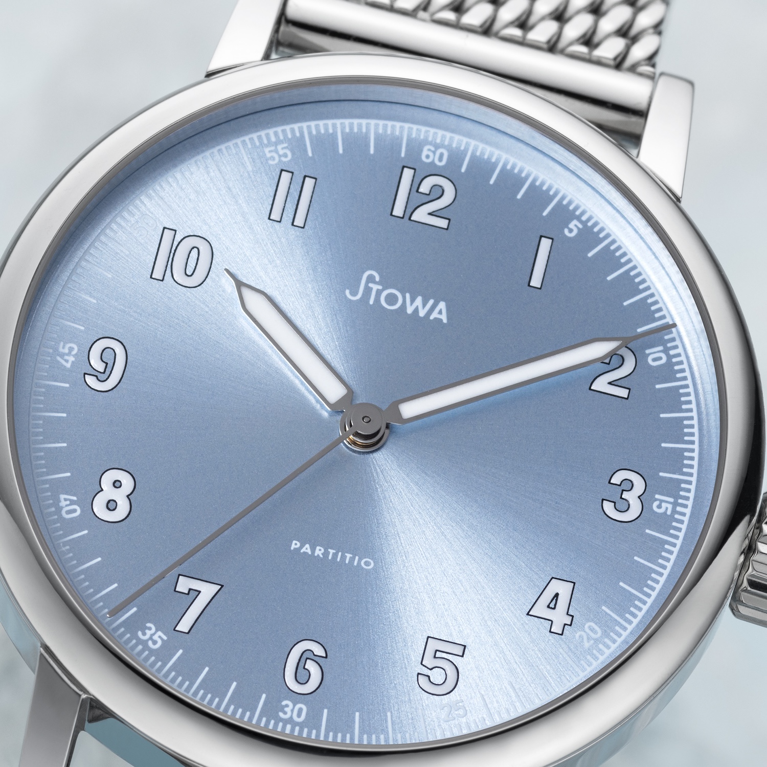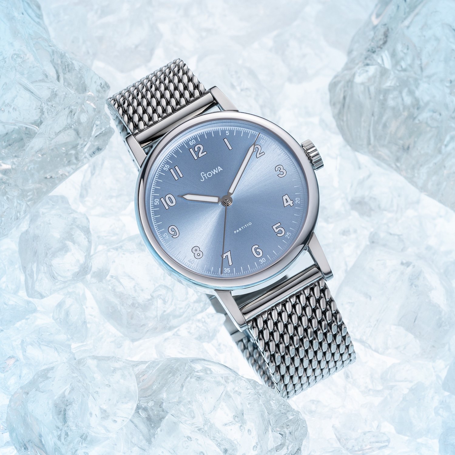 La Partitio trouve ses origines dans les années 1930, une période où la marque cherchait à concilier lisibilité, précision et robustesse. Son design intemporel, marqué par un cadran clair et une échelle de minuterie détaillée, en a fait une montre de référence pour les amateurs de tocantes classiques sans fioritures. La nouvelle édition Ice Blue conserve cet esprit d’authenticité, tout en y injectant une dose de modernité à travers un cadran soleillé bleu glacé, entre gris clair et argent givré, rappelant les reflets d’un lac gelé sous la brume. Ce sont les mots de Stowa et c’est bien trouvé !