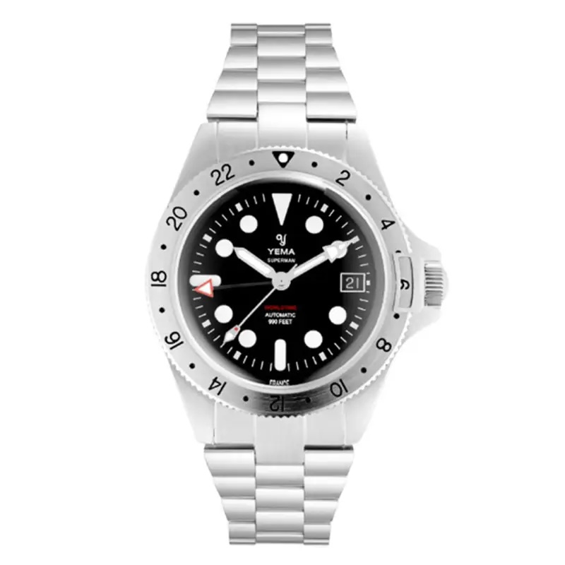 Pour nous, amateurs de plongeuses, s’il y a une marque française qu’il faut absolument connaître, c’est bien Yema et surtout sa Superman. Après avoir marqué l’histoire en 1967 (et non 1963 comme beaucoup le pensent), cette montre automatique étanche à 300 mètres se voit parée d’un GMT, d’un “maxi-dial” puis d’une lunette unidirectionnelle en acier avec le fameux bloque lunette de la maison mortuacienne. Une montre passe-partout de 39 mm histoire de convenir à tous les poignets. Prix : 809 € (1 349 €). Disponible ici >>>