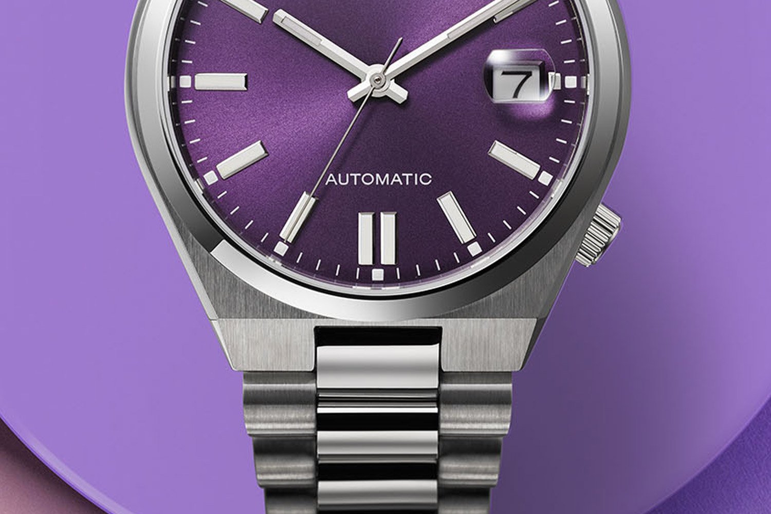 Le premier modèle, référence NJ0200-50M, adopte un bleu foncé soleillé riche en reflets, classique certes mais jamais ennuyeux. Le second, NJ0200-50W, ose un violet inédit, une couleur encore rare dans l’horlogerie et souvent réservée à des marques de niche ou à des éditions limitées. Les deux versions reprennent les index appliqués et les aiguilles facettées revêtues de matière luminescente, ainsi qu’un guichet de date parfaitement intégré à 3 heures avec en sus une loupe type cyclope. La lisibilité reste irréprochable, mais avec un supplément d’âme grâce à ces nouvelles tonalités qui donnent un caractère bien affirmé sans dénaturer leur âme.