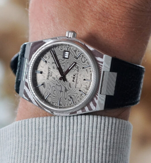 Et pour rendre hommage à la compétition automobile italienne, Echo/Neutra a misé sur des teintes vintage, logique vu que les voitures de collection y sont centrales, via un diptyque crème (appelé “Peach”) et bleu nuit avec pour chacun la mention “Coppa d’Oro delle Dolomiti”. Alternances entre brossage et satinage, Super-LumiNova BGW9 sur les aiguilles, insert de lunette en saphir avec une échelle tachymétrique (plutôt que télémétrique comme sur le reste de la collection), c’est techniquement un combo gagnant avec en sus une esthétique sacrément réussie. Et même si les cadrans bleus ont la cote, c’est ce cadran crème (disons pêche jaune si l’on veut être d’accord avec la marque) qui nous a largement séduit.