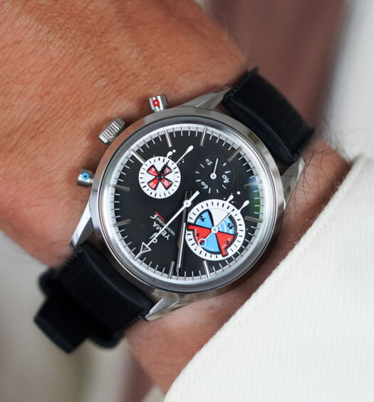Arma Sherman & Avenger, deux montres à l’inspiration militaire “vintage” qui laissent présager un beau sucés en devenir.. 44 mm pour sa boite, une tendance qui implique un gros poignet, 42 étant bien suffisant….