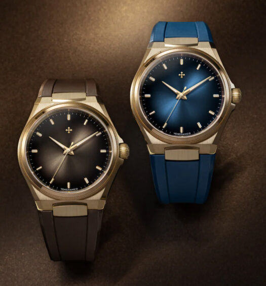 Le cadran, également en or jaune 18 carats également, s’intègre parfaitement au boîtier avec des finitions en godrons polis sur une surface brossée horizontalement. Les index sont représentés par de petits points gravés dans le cadran, avec des repères plus larges pour identifier les heures. Logique. Sur ce cadran, la simplicité est de mise; les aiguilles des heures et des minutes de style dauphines restent discrètes et se fondent sans surprise avec l’ensemble du cadran. L’absence de trotteuse n’est en rien dérangeante et reprend parfaitement le dessin original des années 1979.