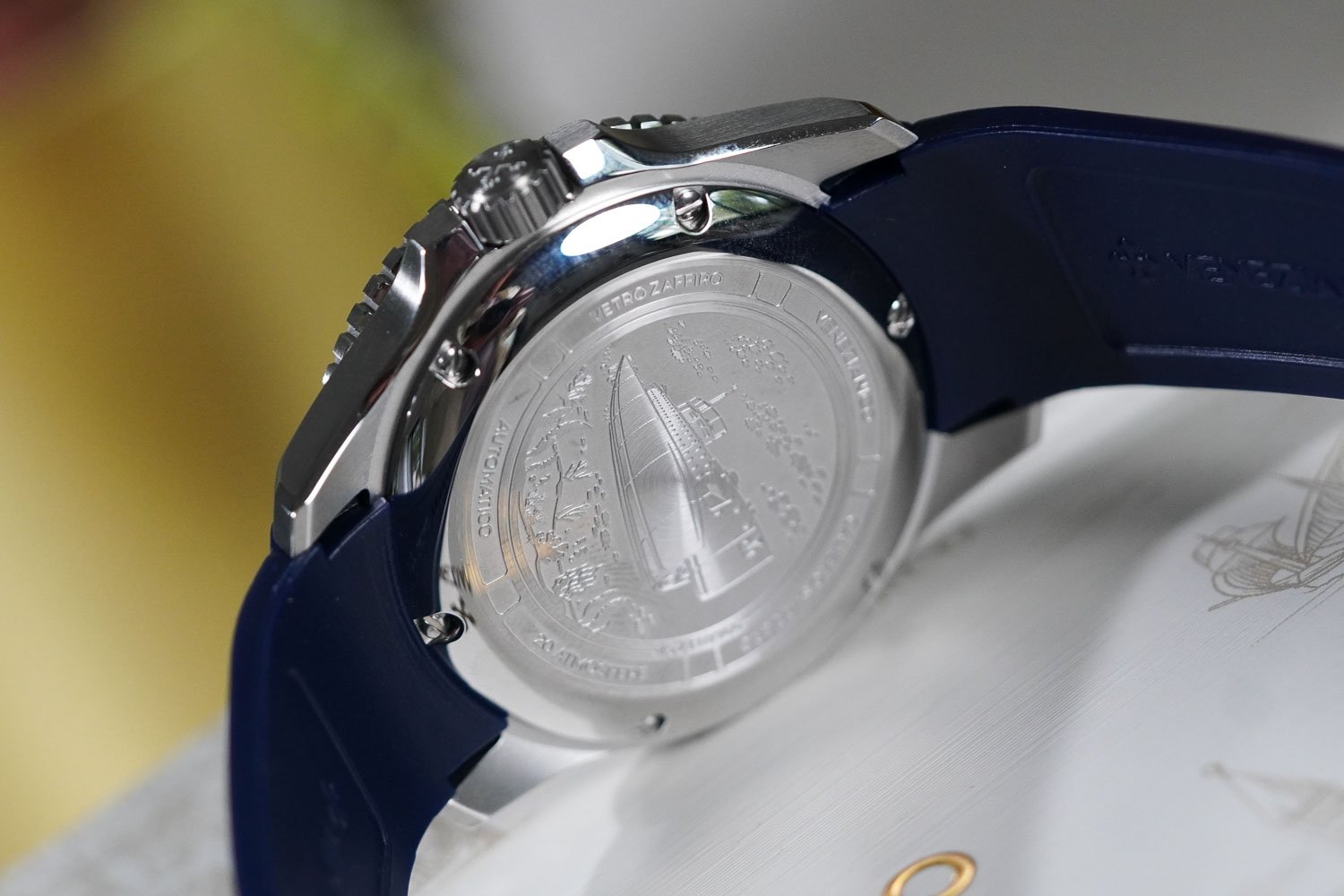 C’est souvent en main que la vérité se révèle, et dans ce cas précis, elle est flatteuse. Les ajustements sont impeccables, les arêtes sont nettes, les brossés précis et la sensation générale de qualité dépasse largement les attentes à ce niveau de prix. Venezianico a beaucoup évolué ces dernières années, et cela se ressent immédiatement : du packaging soigné à la boucle déployante parfaitement usinée, tout respire le sérieux.